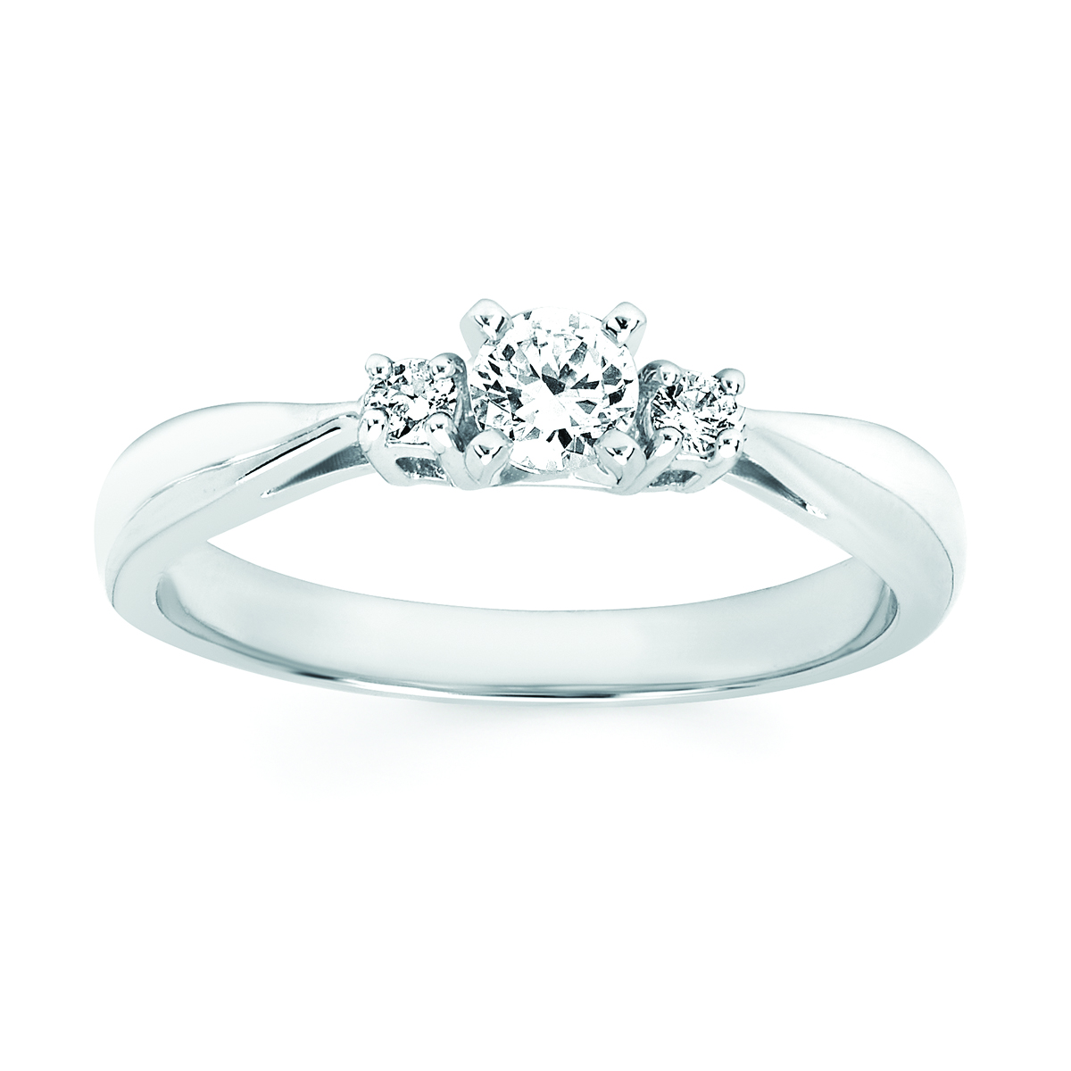 Engagement Ring 3 Stone Bridal: .06 Ctw. Diamond Semi Mount shown with 1/4 Ct. Round Center Diamond in 14K Gold