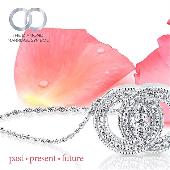 Diamond Marriage Symbol® Pendant In 14K Gold With 3 Diamonds Equaling 1/8 Ctw. Half Rope/ Half Plain