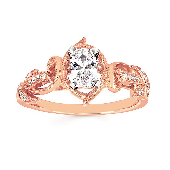 Engagement Ring Forever ElegantĀ® 1/8 Ctw. Diamond Semi Mount shown with 1/2 Ct. Oval Center Diamond in 14K Gold