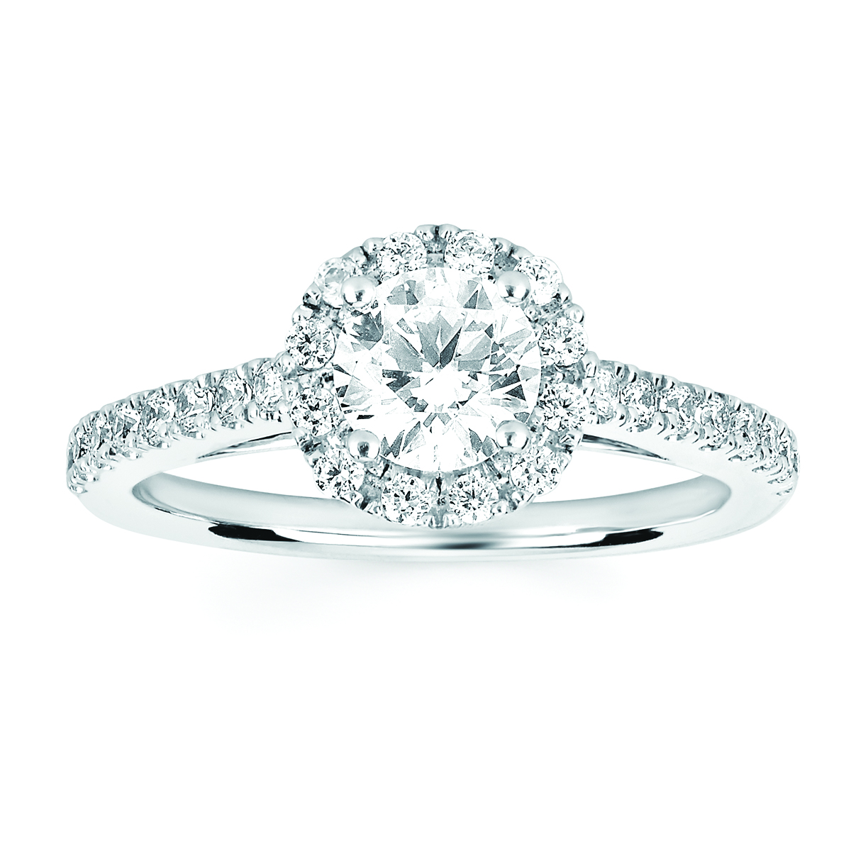 Engagement Ring Halo Bridal: 3/8 Ctw. Diamond Halo Semi Mount available for 3/4 Ct. Round Center Diamond in 14K Gold
