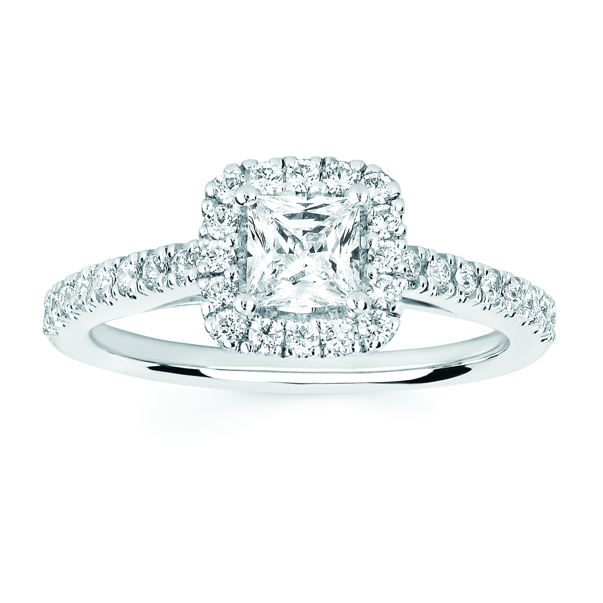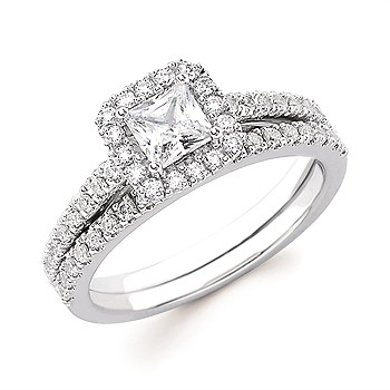 Engagement Ring Halo Bridal: 1/3 Ctw. Diamond Halo Semi Mount available for 1/2 Ct. Princess Cut Center Diamond in 14K Gold
