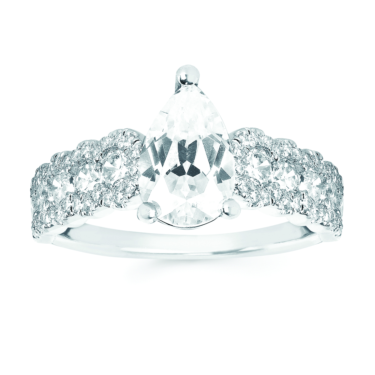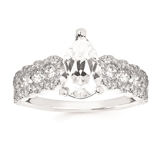 Engagement Ring Classic Bridal: 1 Ctw. Diamond Semi Mount shown with 1.50 Ct. Pear Center Diamond in 14K Gold