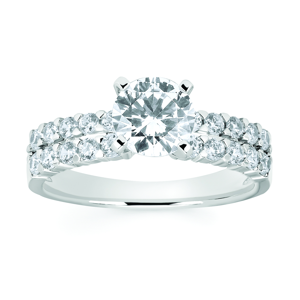 Engagement Ring Classic Bridal: 1/2 Ctw. Diamond Semi Mount shown with 3/4 Ct. Oval Center Diamond in 14K Gold