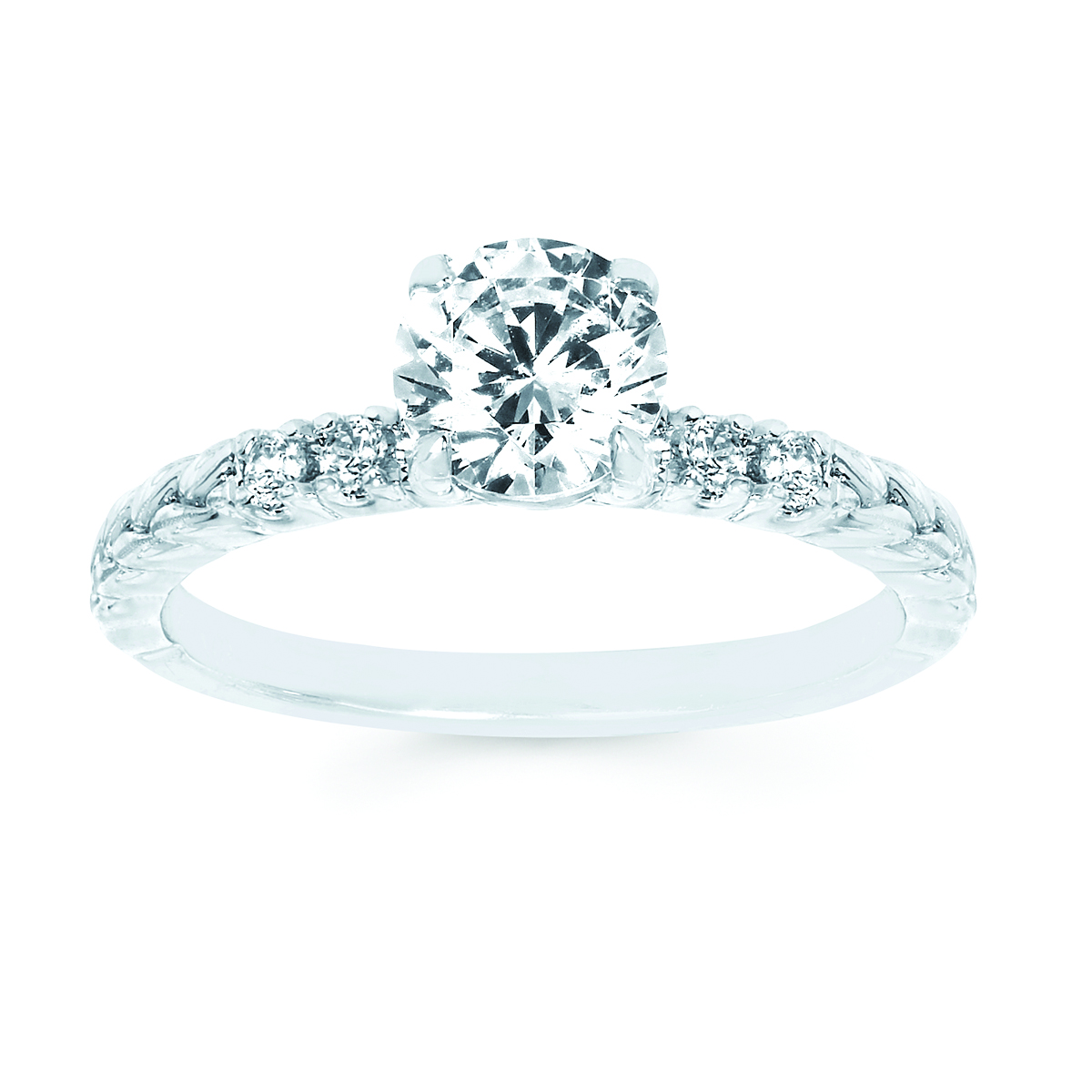 Engagement Ring Modern Bridal: 1/6 Ctw. Diamond Semi Mount shown with 1 Ct. Round Center Diamond in 14K Gold
