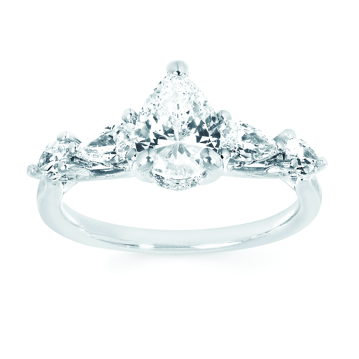 Engagement Ring Classic Bridal: 3/4Ctw. Diamond Semi Mount shown with 1 Ct. Pear Center Diamond in 14K Gold