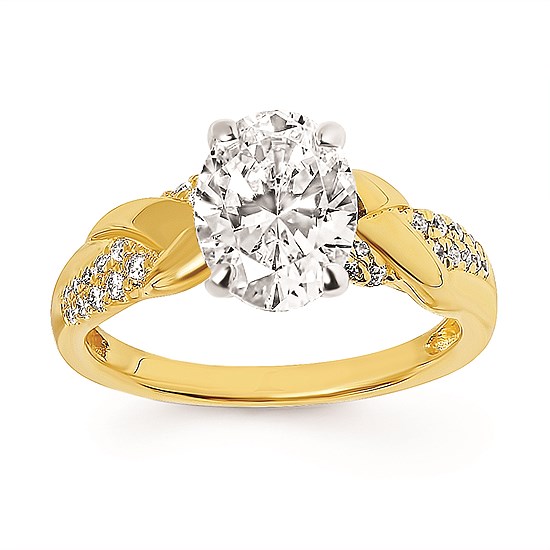 Engagement Ring Modern Bridal: 1/8 Ctw. Diamond Semi Mount shown with 1 1/2 Ct. Oval Center Diamond in 14K Gold