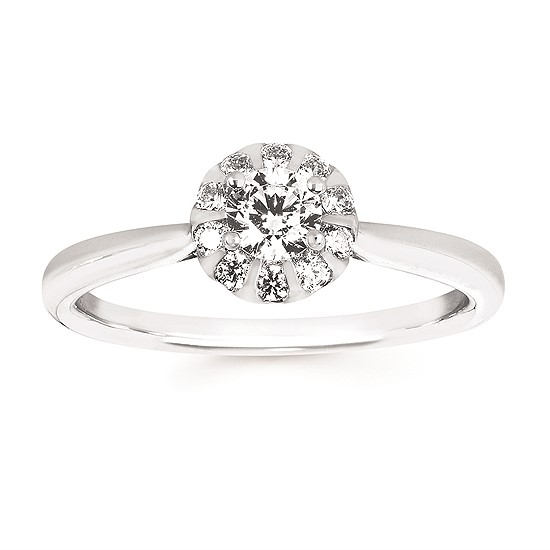 Engagement Ring Halo: 1/6 Ctw. Diamond Semi Mount Shown with 1/4 Round Center Diamond in 14K Gold