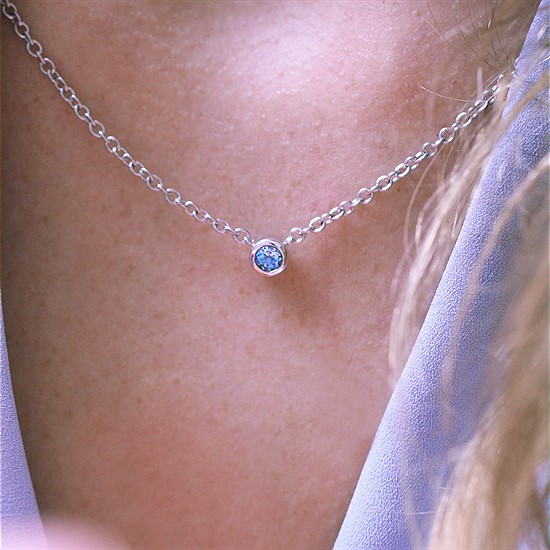 3.7Mm Blue Topaz Bezel Birthstone Pendant With 18" Chain