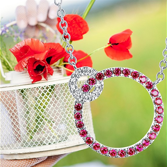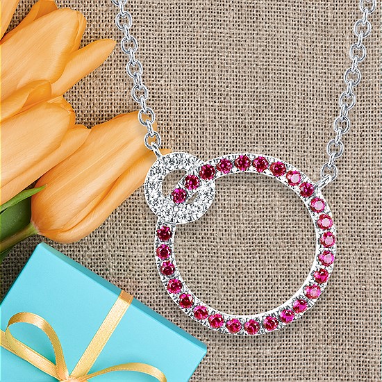 1/2 Tgw. Ruby & Diamond Circle Necklace In 14K Gold