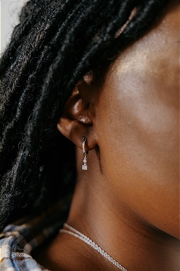 1/10 Ctw. Diamond Baguette & Round Hoop Earrings In Sterling Silver