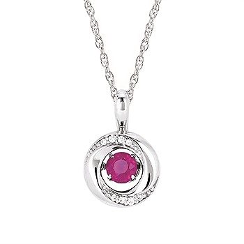 Shimmering Diamonds® Knot Pendant With 3/8 Tgw. Ruby Birthstone And .03 Ctw. Of Diamonds Sterling Silver (July)